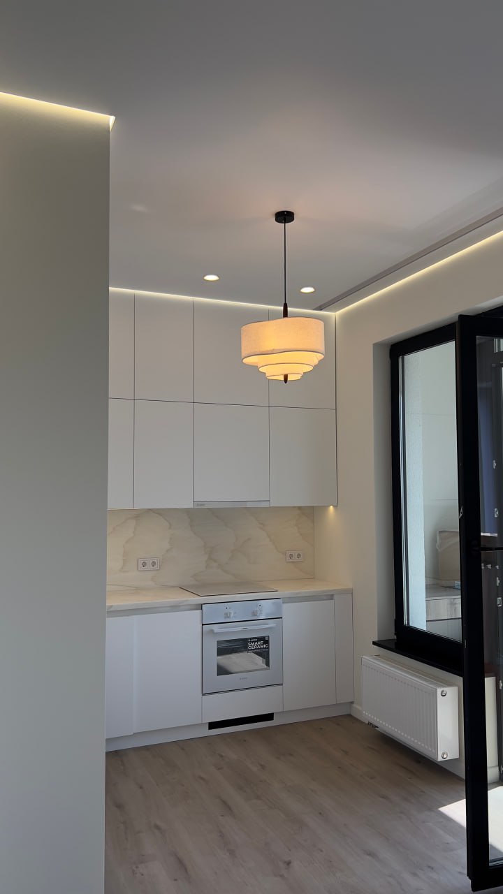 Очень довольны установкой контурного натяжного потолка - выглядит аккуратно и современно. Рассматривали разные варианты, в том числе матовые натяжные потолки и теневые потолки, в итоге подобрали идеальное решение под интерьер. Качество на высоте, монтаж выполнен безупречно.