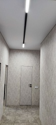 Белый матовый натяжной потолок Bauf с трековым освещением.