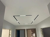 • Теневой потолок. Используется специальный теневой профиль для формирования зазора между полотном и стеной. Он позволяет достичь идеальной геометрии без излишеств.